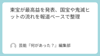東宝が最高益を発表、国宝や鬼滅ヒットの流れを報道ベースで整理