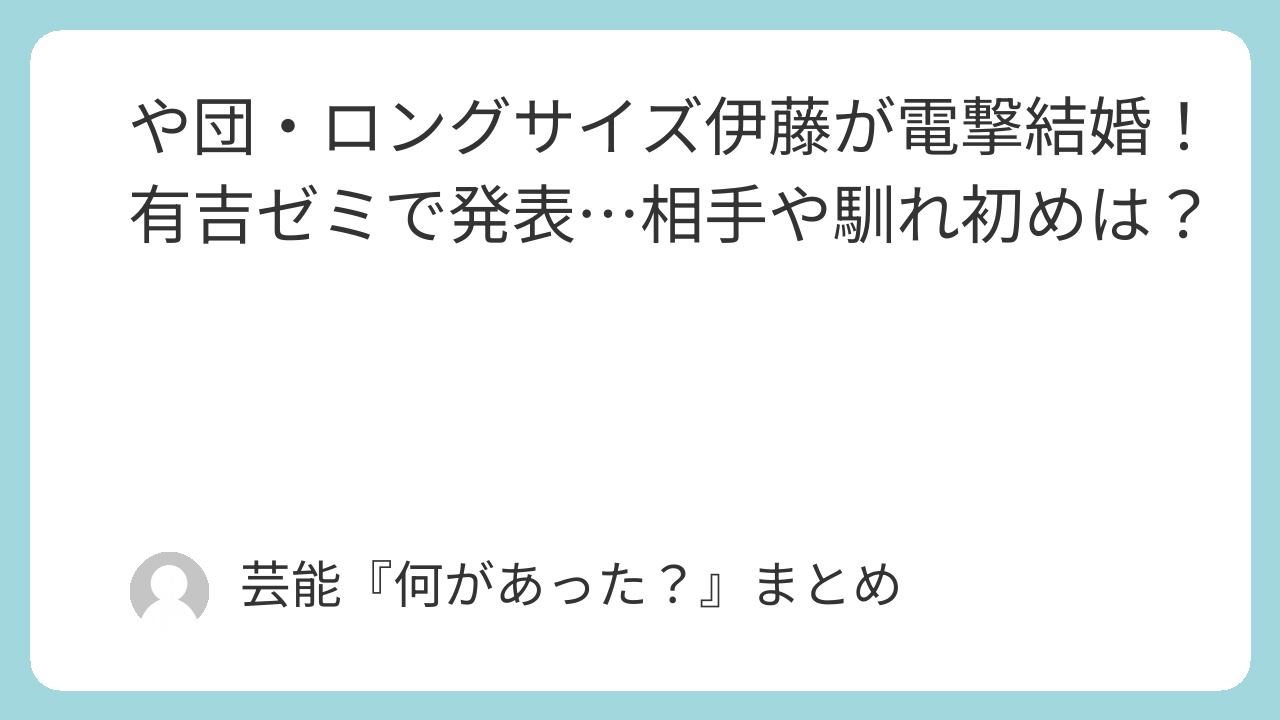 お笑いトリオ「や団」のロングサイズ伊藤さんが、日本テレビ系『有吉ゼミ』で結婚を電撃発表し話題になっています。チャレンジグルメの最中に飛び出した「ここ来る途中に…婚姻届を出しました」の一言に、共演者もスタジオも驚きのリアクション。この記事では、相手の特定や憶測は避けつつ、番組内で語られた内容と、公表されている情報の範囲で要点を整理します。