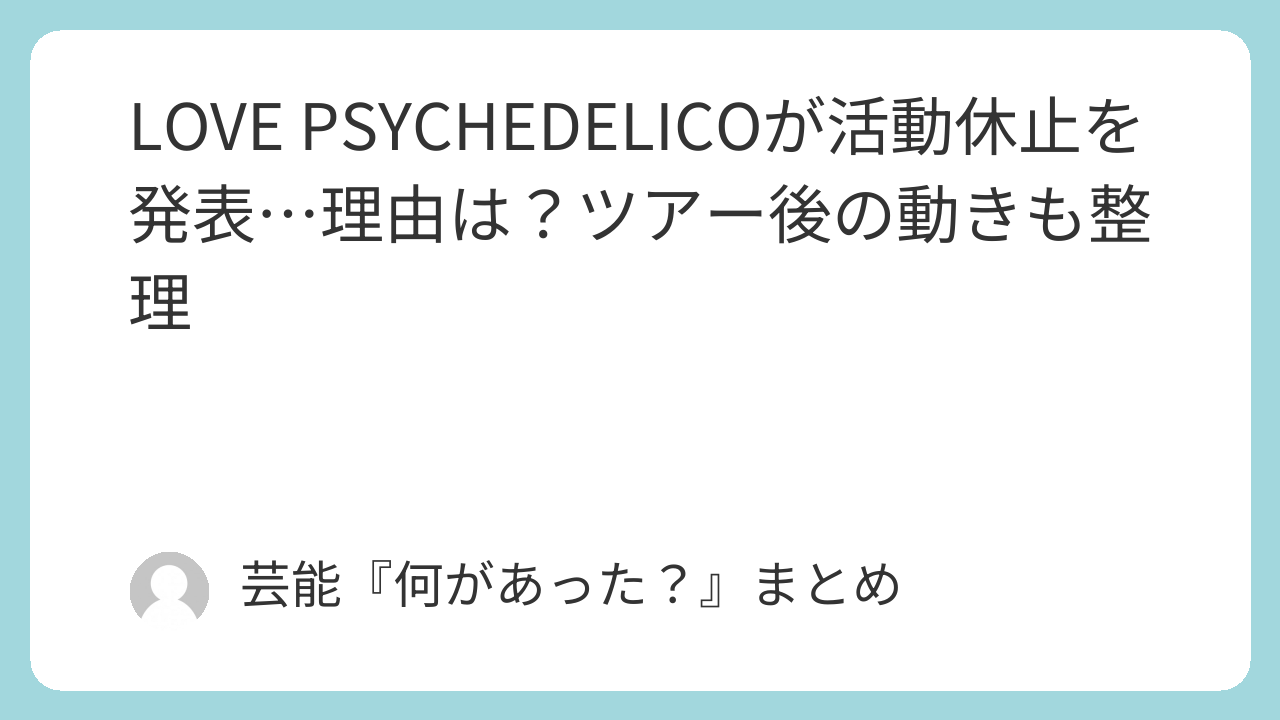 LOVE PSYCHEDELICO(ラブ・サイケデリコ)が「25周年ツアーをもって活動休止する」と発表し、90s〜00s邦楽を通ってきた世代を中心に驚きと感謝の声が広がっています。この記事では、公式発表で明らかになっている内容を軸に、「理由は公表された?」「ツアーはどうなる?」「休止後の動きは?」を分かりやすく整理します。