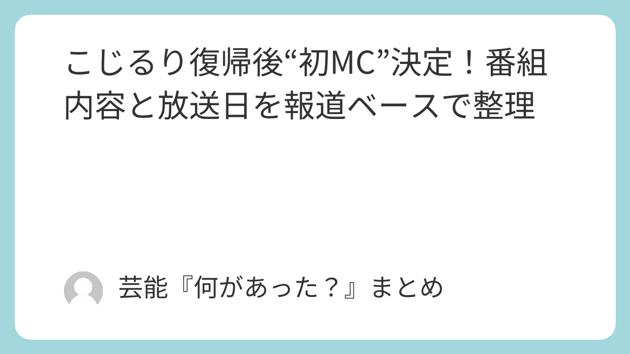 発表では、活動再開後に番組MCを務めるのは本番組が初と紹介されています。