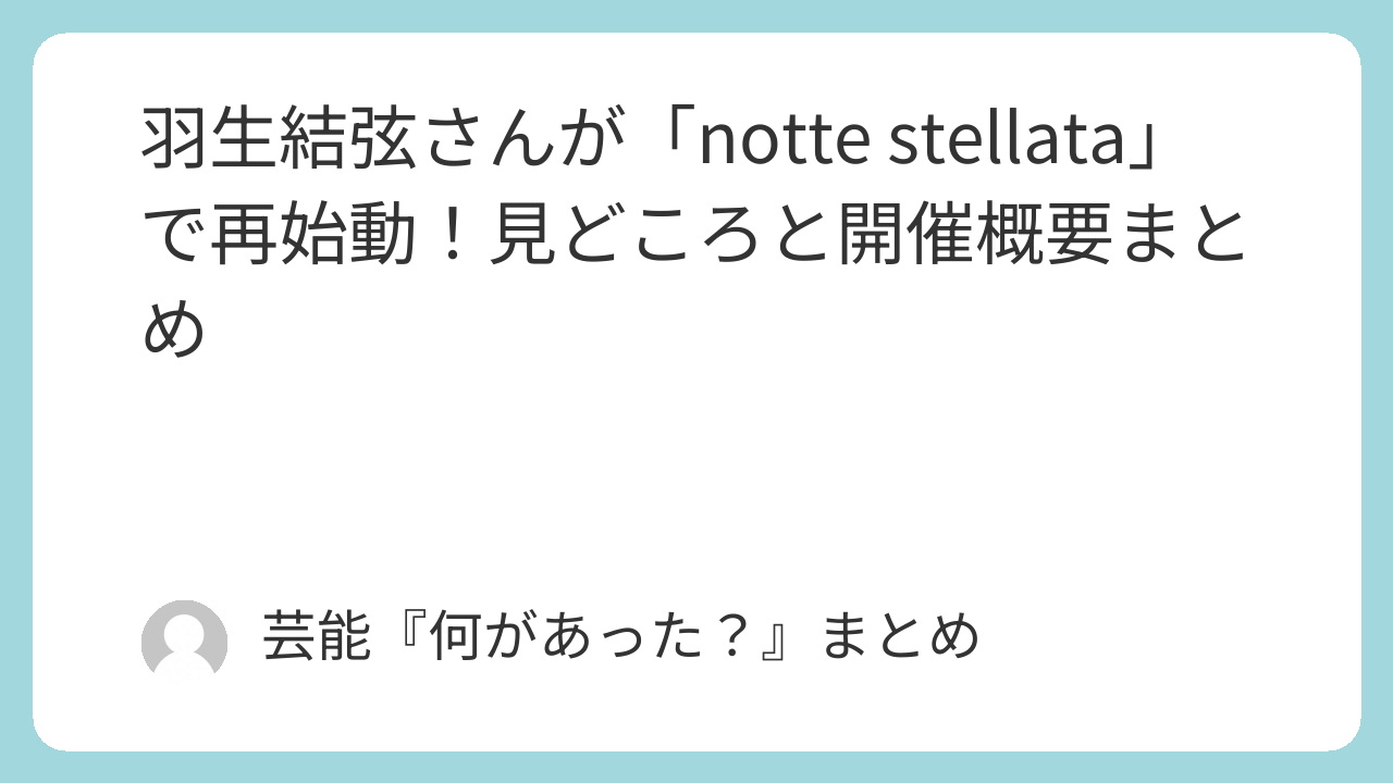 羽生結弦さんが座長を務める「東和薬品 presents 羽生結弦 notte stellata 2026」は、2026年3月7日〜9日に宮城・利府のセキスイハイムスーパーアリーナで開催されます。震災から15年の節目に宮城で行われるアイスショーとして、演技の見どころはもちろん、現地で見届ける意味合いにも注目が集まっています。最新の詳細は公式発表の範囲で更新されるため、公演概要・アクセス・配信情報は公式案内とあわせて整理していく流れになりそうです。