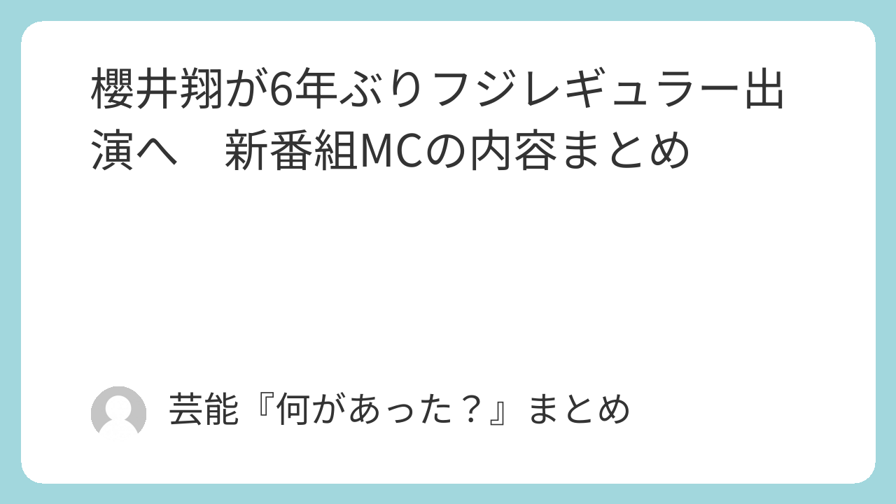 そのため、今の段階では「櫻井翔がMCを務める新しいゲームバラエティが始まる」という大枠を押さえつつ、初回放送でどんな雰囲気になるのかを待つ段階と言えそうです。