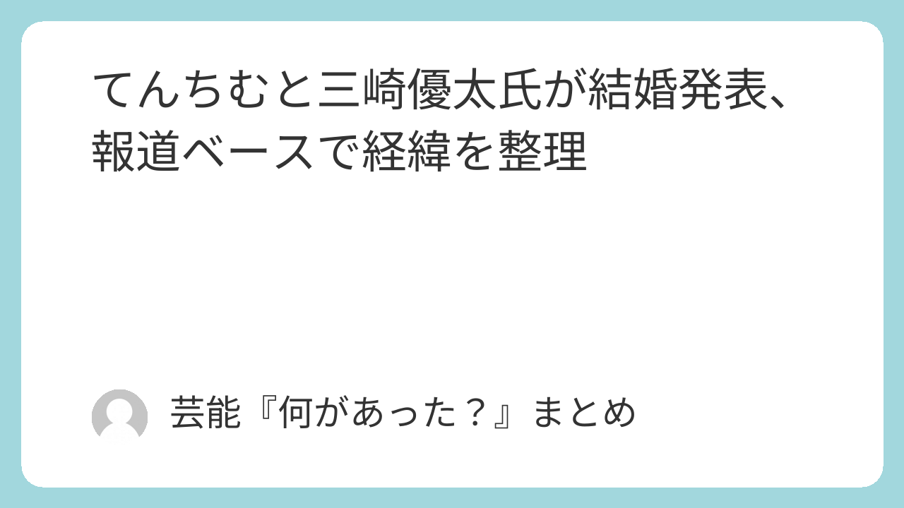 年齢については、報道で三崎優太氏が36歳、てんちむが32歳と紹介されています。今回の発表は、交際報告ではなく、すでに入籍していたことを伝える内容でした。