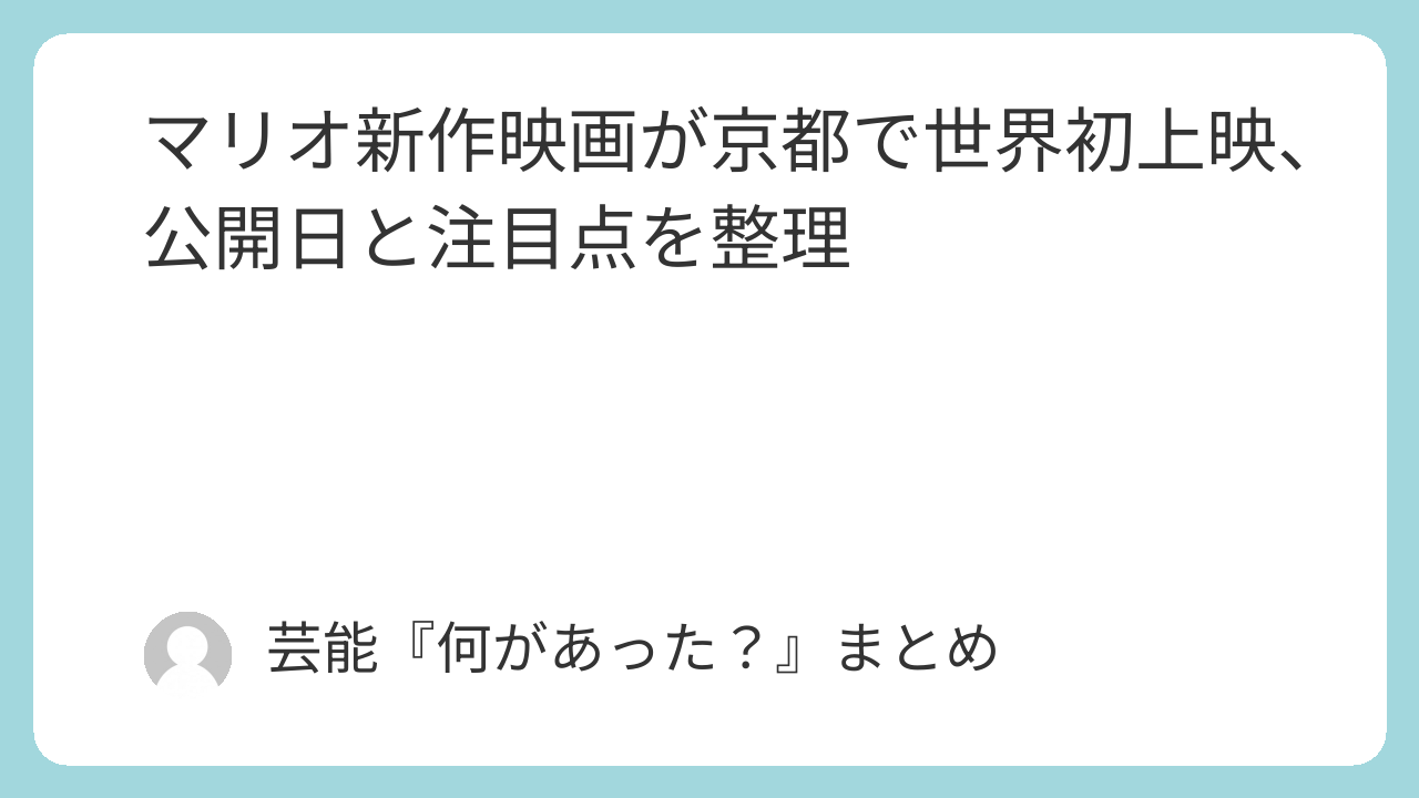 作品の舞台や映像表現は新作らしい広がりを見せつつも、スーパーマリオの世界観をベースにした劇場作品であることがはっきりしています。今回のニュースでは、作品そのものの新情報に加えて、公開に先がけて京都で世界初上映が行われたことが大きな注目点になりました。