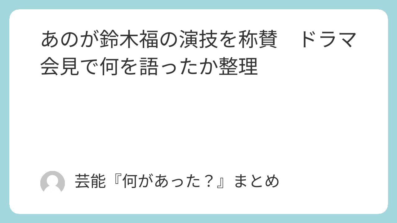 | 話題になった発言 | あのが鈴木福の芝居について、殴る場面を振り返りながら称賛したこと |