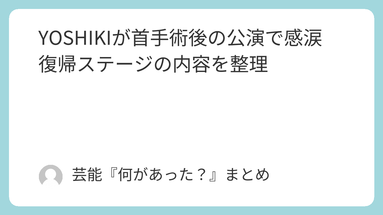 今回のニュースがここまで広がっているのは、YOSHIKIさんの復帰ステージという意味合いが強かったことに加え、公演そのものの完成度や感情の動きまで伝わってきたからです。首の手術後という背景がありながら、3日間のクラシカルコンサートをやり遂げたこと自体に、大きな意味を感じた人も多いのではないでしょうか。