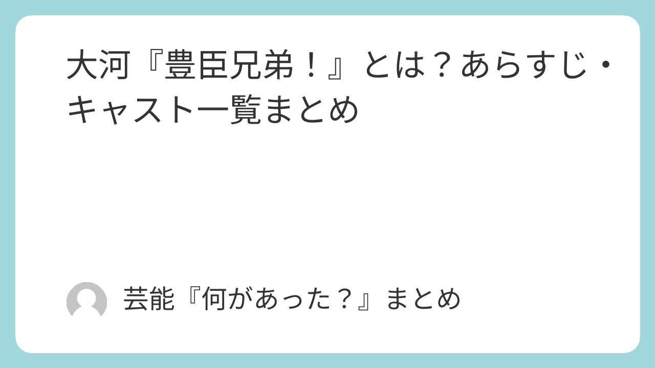 大河『豊臣兄弟!』は、豊臣秀吉ではなく弟・秀長を主人公に据えた“新しい角度の戦国サクセスストーリー”。兄弟の絆と、信長・家康ら時代の中心人物との出会いがどう絡むのかが最大の見どころです。キャストは仲野太賀さん(秀長)×池松壮亮さん(秀吉)を軸に、小栗旬さん(信長)や菅田将暉さん(竹中半兵衛)など強力布陣。今後の相関図・扮装ビジュアル・追加キャストの続報も、公式発表ベースで追っていきましょう。