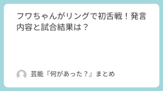 1.芸能ニュース フワちゃんがリングで初舌戦!発言内容と試合結果は? フワちゃんが後楽園ホールのリングで初舌戦!6人タッグの試合結果、吏南とのマイク応酬の要点、次戦の注目点とSNS反応をまとめます。 2026.01.31 1.芸能ニュースプロレス