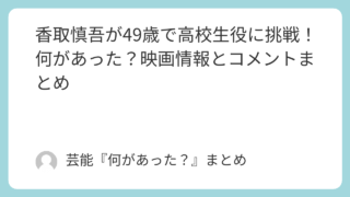 1.芸能ニュース 香取慎吾が49歳で高校生役に挑戦!何があった?映画情報とコメントまとめ 香取慎吾が高校生役に挑戦!映画『高校生家族』実写化の内容、公開時期、キャスト、コメント、SNS反応をまとめます。 2026.02.03 1.芸能ニュース4.ドラマ・映画