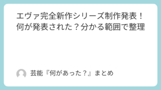 1.芸能ニュース エヴァ完全新作シリーズ制作発表!何が発表された?分かる範囲で整理 エヴァ30周年フェスで完全新作シリーズ制作の初報が発表。スタッフ・制作体制、分かっていることと未発表点、短編との違い、SNS反応を整理。 2026.02.23 1.芸能ニュースアニメエヴァンゲリオン