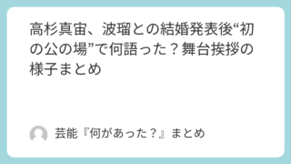 1.芸能ニュース 高杉真宙、波瑠との結婚発表後“初の公の場”で何語った?舞台挨拶の様子まとめ 高杉真宙が波瑠との結婚発表後初めて報道陣の前へ。主演映画の初日舞台挨拶で語った内容や場の雰囲気、SNS反応を公式・報道の範囲で整理。 2026.01.10 1.芸能ニュース4.ドラマ・映画舞台挨拶レポ