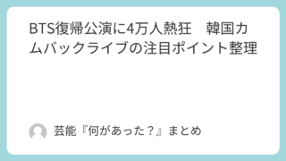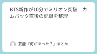 BTS新作「ARIRANG」が発売約10分で100万枚を突破。初日売上398万枚、音源チャートの動き、カムバック直後に話題になった記録のポイントを分かりやすく整理しています。