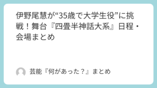 伊野尾慧主演、舞台『四畳半神話大系』が上田誠の脚本・演出で上演決定。東京(新国立劇場)&大阪(箕面)の公演日程・会場と、見どころを公式発表ベースでまとめます。