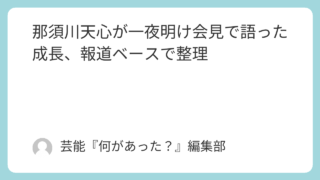 1.芸能ニュース 那須川天心が一夜明け会見で語った成長、報道ベースで整理